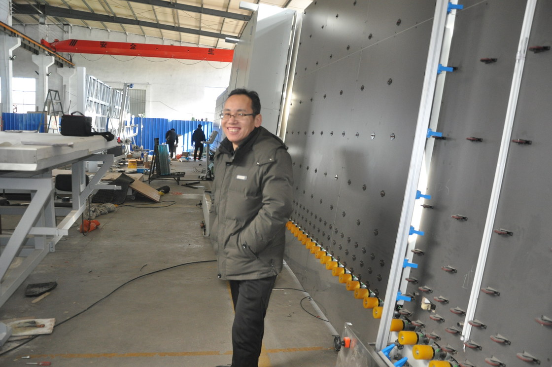 *Insulating Pressmaschine des Glases des synchronen Gurtes: synchroner Gurtstrahl bewegt sich entsprechend der Glasstärke- und Aluminiumrahmenbreite, zu garantieren, dass das Inflationsloch zwischen dem ersten und zweiten Glasaluminiumrahmen gewesen ist, zum des Abstandes aufzublasen (Wert kommen von DC-Ventilstößel und vom elektronischen Machthaber)