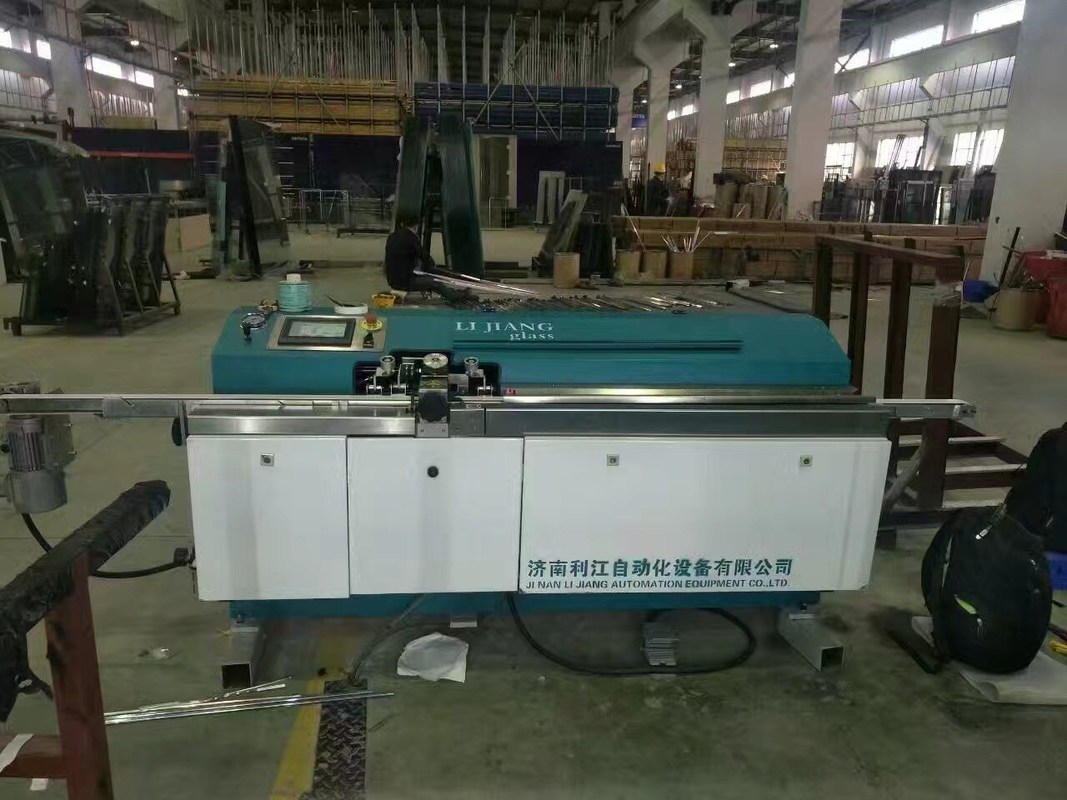 Wird automatische Butylextrudermaschine LJTB 01 für Aluminiumdistanzscheibenrahmen gleichmäßig verbreiten mit heißem Schmelzbutyl benutzt.