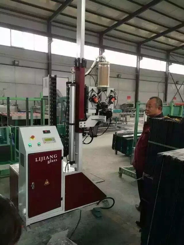 Für den automatischen versiegelnden Roboter ist der mechanische Kopf vor Maschine, es kann die wirkliche Verbindung mit Doppelverglasungsfertigungsstraße erzielen, wenn er das Schrittglas produziert.