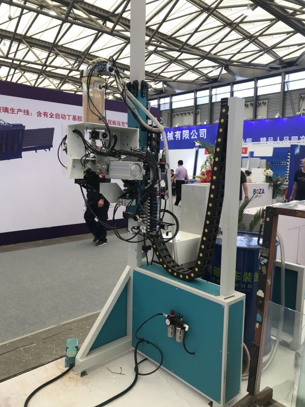 Für den automatischen versiegelnden Roboter ist der mechanische Kopf vor Maschine, es kann die wirkliche Verbindung mit Doppelverglasungsfertigungsstraße erzielen, wenn er das Schrittglas produziert.
